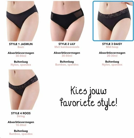 Lekvrije 4-laags menstruatie ondergoed voor een zorgeloze dag/nacht. Menstruatie ondergoed is een duurzaam alternatief voor tampons, maandverband, en inlegkruisjes. Perfect in combinatie te gebruiken met Bamboozy menstruatie cups.