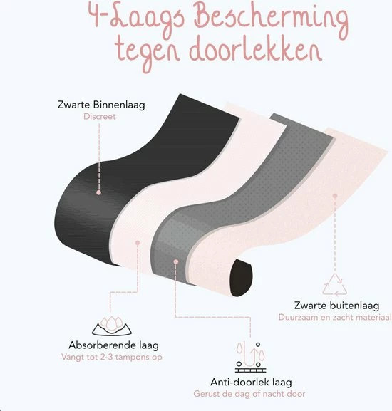 Lekvrije 4-laags menstruatie ondergoed voor een zorgeloze dag/nacht. Menstruatie ondergoed is een duurzaam alternatief voor tampons, maandverband, en inlegkruisjes. Perfect in combinatie te gebruiken met Bamboozy menstruatie cups.