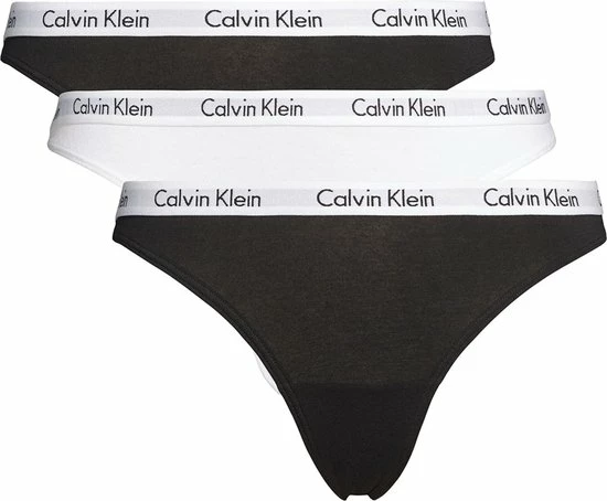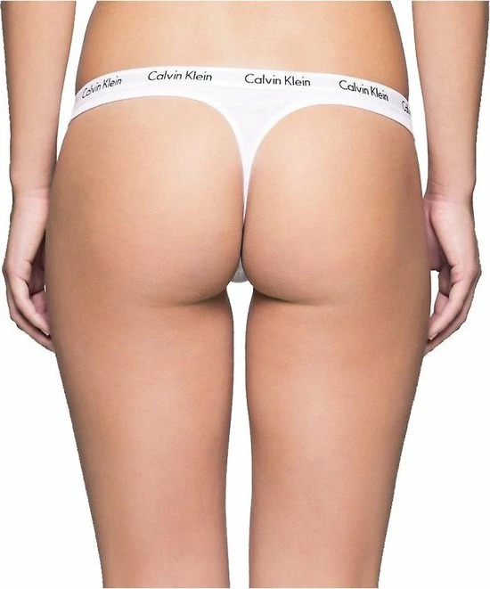 Comfortabele 3-pack damesstrings van Calvin Klein in zacht, ademend en stretch katoen. De string heeft een zachte elastische band met daarin het Calvin Klein logo geweven. Het is een low rise model. De string heeft aan de zijkanten een platte naad. In een handig meeneem tasje!