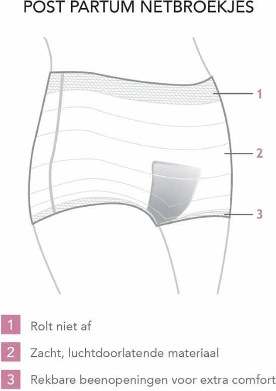 De Carriwell Netbroekjes, zijn ideaal voor gebruik na de bevalling in je kraamperiode. De netbroekjes van Carriwell houden kraamverband op de plaats. De onderbroeken zijn rekbaar en wasbaar.