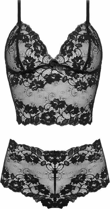 Setje voor verleidelijke momenten, overdag of avonds. Dit setje is zo comfortabel dat je het gerust ook als everyday lingerie kunt dragen. Het topje is in trendy bralette style met triangelcups (niet voorgevormd) en heeft verstelbare schouderbandjes. Het shortje heeft een mooie snit en vorm, naadloos aan de zijkanten wat aangenaam zit onder bijvoorbeeld een strak jurkje. Gemaakt van superzacht, elastisch kant. Mooie pasvorm en door ons team goedgekeurd.