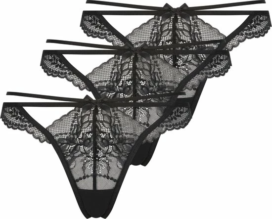 Deze strings kunnen niet missen in jouw collectie! Ze bevatten kant, leuke cut-out details en een schattig strikje aan de voorkant. Heel handig verpakt als 3-pack!