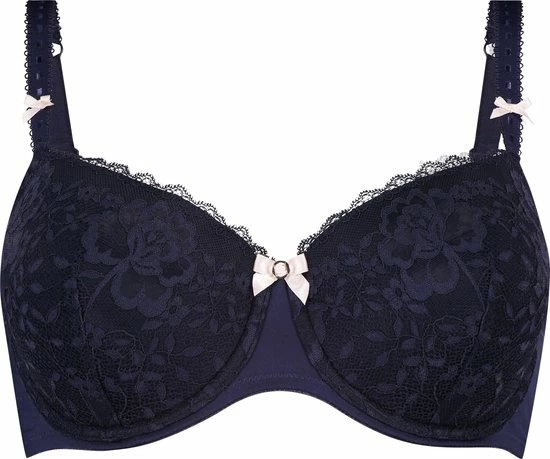 De cups van deze voorgevormde beugel bh zijn bedekt met prachtig kant. De bh is afgewerkt met subtiele details zoals het strikje tussen de cups en op de schouderbandjes. Deze bh is te combineren met de bijpassende slip.