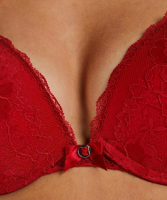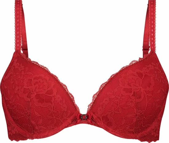 Deze voorgevormde beugel bh is mooi afgewerkt met kant in een bloemenmotief. Het push-up effect zorgt voor een optisch grotere cupmaat. Combineer met een bijpassende slip voor een complete look!