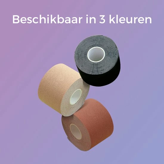 De oppervlakte waar de tape gebruikt wordt dient schoon en droog te zijn. Zorg er dus voor dat er geen olie, creme of make-up zit op het stuk huid waar je de tape wilt plakken. Knip een stuk van de rol af en tapen maar!