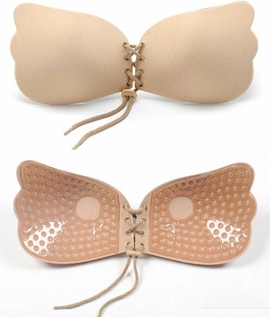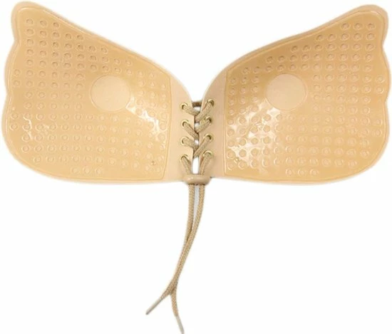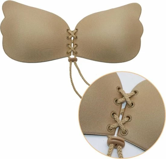 1 x KELERINO. Strapless Plak BH – Vleugels met Vetersluiting – Cup A / Beige