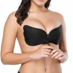 Eindelijk verlost van de schouderbandjes en de onflatteuze bh bandjes maar toch het push-up volume houden? Dan is deze plak bh de oplossing! Gemakkelijk aan te brengen en opnieuw te gebruiken. Deze plak bh heeft een optimaal push-up effect door middel van de veter sluiting in het midden. Door de veter sluiting word de buste mooi naar elkaar toe getrokken. De plak bh heeft een sterk klevend en duurzaam ontwikkelde plak laag waardoor de bh fijn op zijn plek blijft zitten.