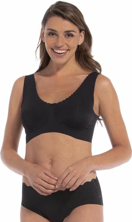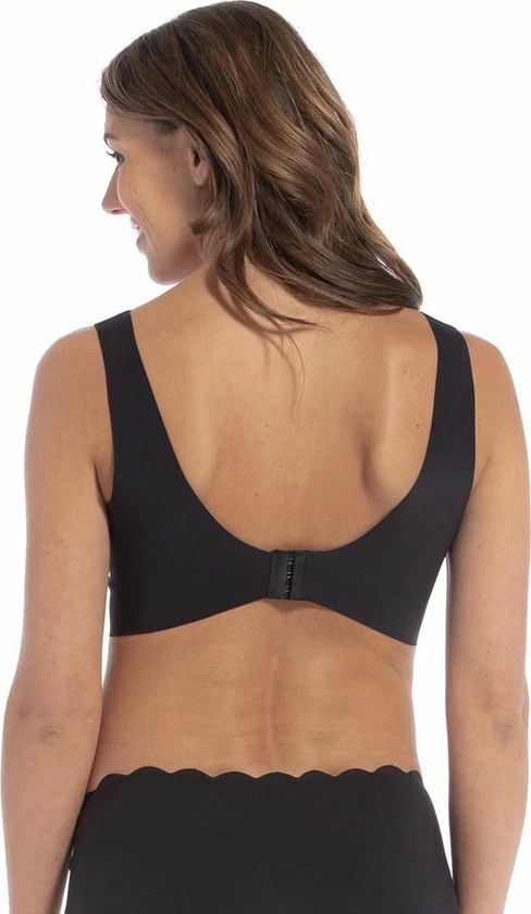 De Scallop Bra is gemaakt van super zacht en glad gerecycled materiaal. De bh heeft een v-hals met scallop design en heeft uitneembare cups. De dubbele laag stof zorgt voor de juiste ondersteuning en de haak- en oogsluiting zorgen dat de bh perfect aansluit op ieder lichaam. De gladde en naadloze afwerking zorgt er voor dat de bh compleet onzichtbaar is onder elke outfit!