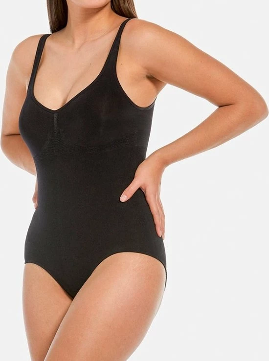 De MAGIC SLIMBODY is een seamless body voor een geweldig corrigerend effect van het gehele lichaam. Speciaal de maag, buik en taille worden optimaal gecorrigeerd en door de ingenieuze breitechniek geeft de Slimbody een goede ondersteuning aan de borsten, waardoor deze ook zonder BH gedragen kan worden. Volledig zonder naden, dus onzichtbaar onder kleding.