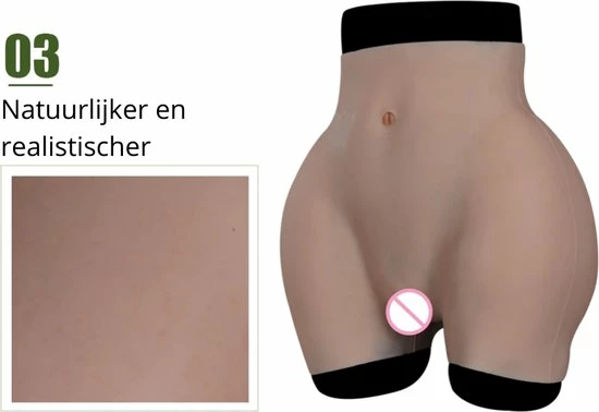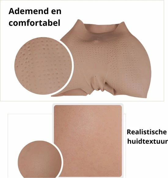 Het materiaal wat gebruikt is voelt aan en ziet eruit als huidstructuur. Hierdoor heb je niet door dat je de nep heupen draagt.