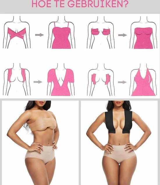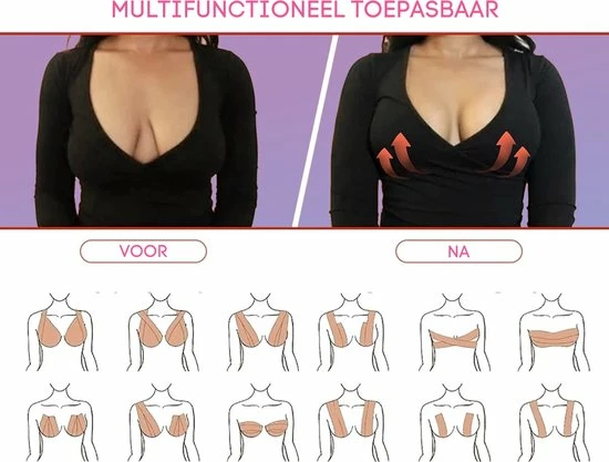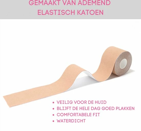 In dit soort situaties is de boobtape de perfecte oplossing. Met behulp van deze tape kunnen de borsten op de gewenste manier gelift worden wat zorgt voor een fabulous look. De tape kan op verschillende manieren worden aangebracht (zoals te zien op de productafbeeldingen) en in elke vorm worden bijgeknipt, zodat deze bij elke soort outfit aansluit.