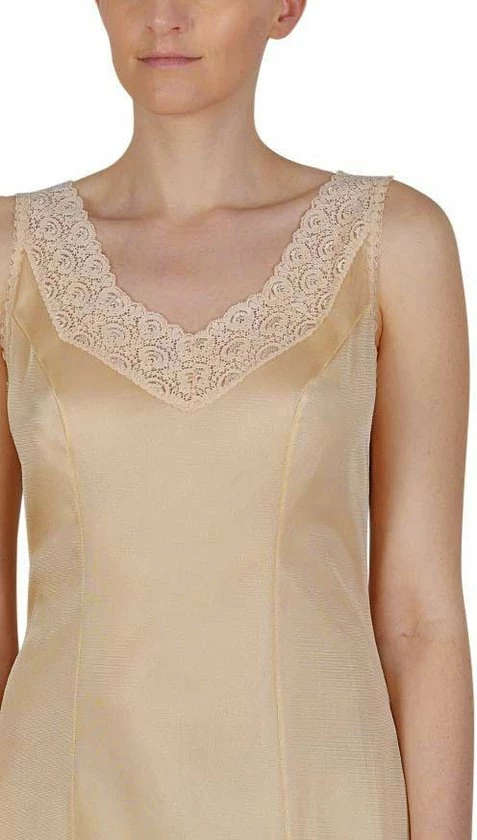 Een fijne onderjurk van Südtrikot die ideaal is voor onder een jurkje! Het is gemaakt van 100% antistatische polyamide. De onderjurk komt tot rond de knie en is ongeveer 97 cm lang. De hals en onderkant is stijlvol afgewerkt met kant.