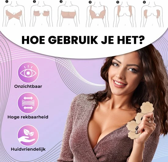 Ademende Plak BH. Wanneer het hartje zomer is met warme temperaturen begrijpen wij dat een BH ontzettend warm en oncomfortabel is. Het voordeel van onze fashion tape is dat het materiaal ademend en ontzettend licht is. JIj hebt dus geen last van de hete temperaturen.