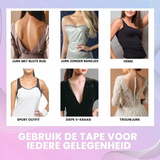 Een mooie jurk draag je het liefst zonder dat je je BH erin afgetekend ziet, want wat een lelijk gezicht is dat zeg! Daarom heb jij onze boob tape nodig met meegeleverde nipple covers.