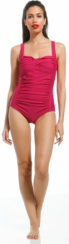Het badpak heeft een mooi fuchsia roze kleur en een wikkellook bij de buste.