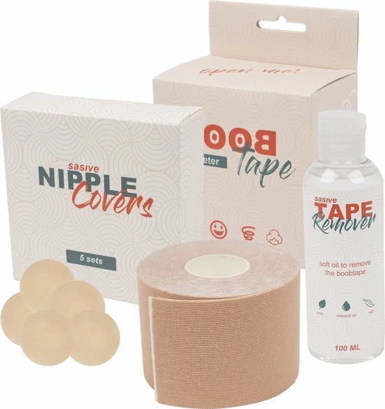 Gehoord over boobtape? Met deze starter pack ben je helemaal ready om deze tape te gaan gebruiken. In het pakket zit de tape zelf, de tepelcovers en de olie om de tape te verwijderen. Start met het aanbrengen van de tepelcovers, gebruik dan de boobtape op een van de manieren die op de verpakking staan afgebeeld, om vervolgens deze los te halen met de meegeleverde boobtape remover olie.
