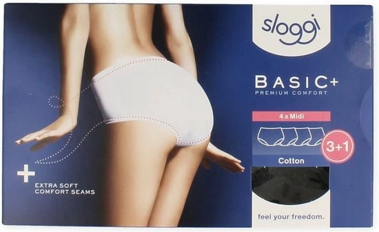 Sloggi Basic+ Dames Midi Slip – 4-pack – Zwart – Maat 44