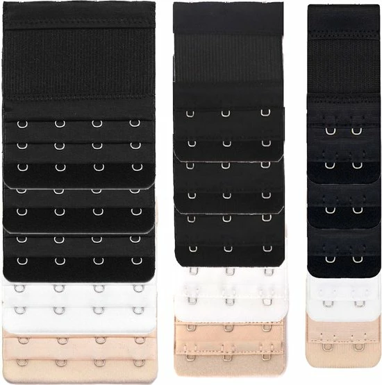 Zitten jouw beha’s te strak maar vind je het zonde om direct nieuwe te kopen? Met deze elastische bh verlengstukken kun je de riempjes van je bh verlengen zodat deze comfortabeler zullen zitten. Dit pakket bevat maar liefst 15 stukjes met zowel 2, 3 als 4 haakjes en in drie verschillende kleuren. Zo zit je altijd goed!